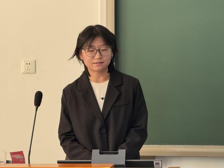 首先进行的是国家奖学金答辩。候选人高馨怡、白一童、徐钰铎三位同学依次上台,分别从学业成绩、科研成果、社会实践、综合素质等多个维度,全面展示了各自在校期间取得的优异成绩与成长收获。
