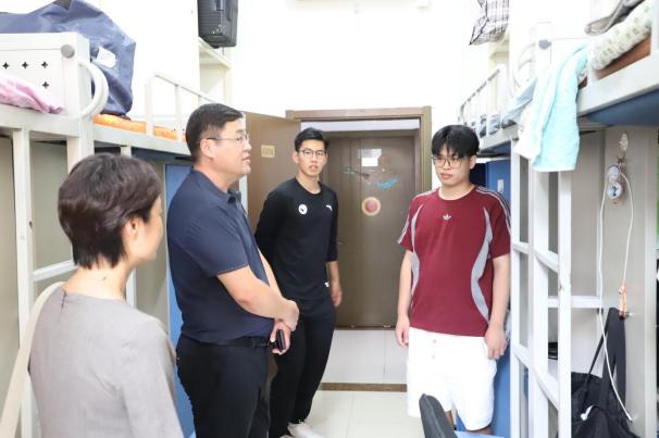 下午,学院院长张本家、党委副书记陈绮文一行走进学生宿舍,亲切看望新生。他们详细了解了同学们的生活环境和实际需求,提醒大家注意宿舍安全与作息规律,同时勉励新生们把握研究生阶段的宝贵时光,拓宽学术视野,锤炼专业素养,培养独立思考与合作探索的能力。