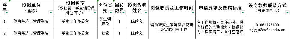 根据《3044永利集团研究生“三助一辅”工作管理办法(修订)》(校发〔2020〕62号)和《关于开展2025-2026学年第一学期“三助一辅”岗位设聘工作的通知》(研字〔2025〕70号)等相关文件要求,本学期学院设学生辅导员和助管岗位各1个,设岗信息要求见下表: